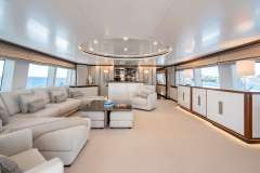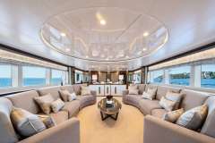 The Main Salon has been re-designed with soft carpet and curved sofas to create an intimate and cozy circle for guests to unwind in, with a distinguished dining area midships, ideal not just for interior dining, but also as a quiet workspace.