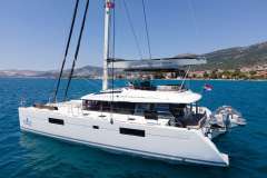 Offered by Amwax Prime, the breathtaking charter yacht TOPAZ (Lagoon 560 S2) is a 55 ft yacht. The highlights of TOPAZ (Lagoon 560 S2) are her well-chosen interiors and fantastic layout. She was constructed by the renowned boatbuilder Lagoon in 2017. A succesful refit was completed in FULLY REFITTED 2024: platform/tenderlift, engines, watermaker, generator, sun covers, bow net, ropes. The spacious yacht layout features 5 cozy cabins and easily accommodates a group of 10 guests.