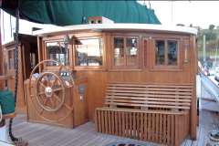 The Tree of Life's rig is very traditional, with its fiddled bowsprit, reefing topmasts and deadeyes. She spreads 3,894 sq ft of canvas with all sail set, giving her a sail area/displacement ratio of 24; this is more than adequate to keep her moving nicely in even the lightest of breezes. There are enough lines to handle to keep the crew busy and she is a beautiful sight surging along on a broad reach.