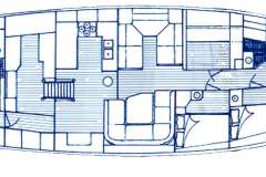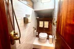 The aft stateroom is incredibly spacious and has four windows on the transom at the head of the bed. Additionally, there is a skylight, a second hatch, and stairway to the deck. Portholes line the walls giving you the option to take in the fresh air while sleeping.