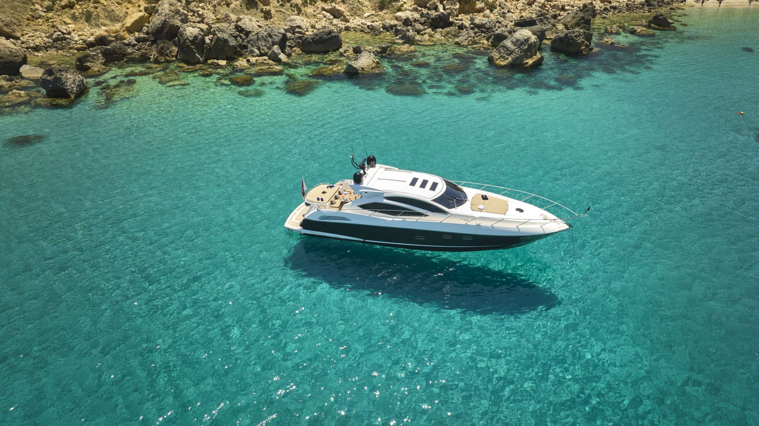 Introduced by Amwax Prime, the majestic charter yacht Vellamo is a 64 ft yacht. The primary distinction of Vellamo are her generous space and fantastic layout. She was constructed by the ship builder Sunseeker in 2010. The expansive yacht layout features 3 generous cabins and easily accommodates a group of 4 guests.