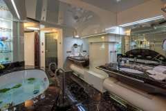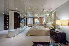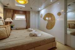 Master cabin with King size bed, his & hers bathroom with jacuzzi & sauna, his & hers walk in closets, mini bar, safe box and an office on the main deckTwo VIP cabins and three guest cabins with double beds that can be separated to twin beds.