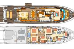 Sanlorenzo SL 106 Vittoria offers accommodation for up to 10 guests in 5 cabins.The Owner suite on the main deck, three double cabins and a twin cabin on the lower deck. All cabins are ensuite.