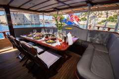 Comfortable accommodation for 12 + 2 guests in 6 guest cabins. There is 1 master cabin, 3 double cabins and 2 double cabins with addditional bed; providing more than enough space to comfortably enjoy perfect cruise in Croatia!