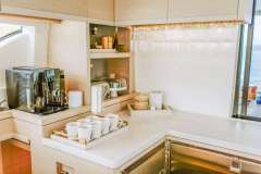 3 queen ensuite cabins and midship cabin are available to guests. Midship and port forward cabins share head. Crew will take port aft queen cabin.