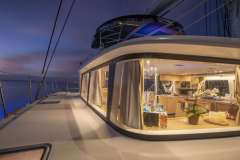 Deck areas of Whispers II offer a variety of options for outdoor activities – from soaking up the sun on the flybridge, enjoying alfresco meals on the aft deck to lounging on the forward trampolines. Moreover, enthusiasts of water sports will highly appreciate a wide assortment of toys which includes kayaks, snorkeling and fishing gear.