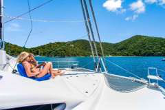 This Xquisite 2022 50' sailing catamaran boasts a spacious master stateroom on the starboard side, comfortably accommodating two guests. On the port side, there is a large king cabin. The owner's suite features a generously sized bathroom, while both guest bathrooms come equipped with private ensuite facilities, including electric toilets, vanities, and showers. The yacht and its rooms are bathed in natural light and offer excellent ventilation, with the option of full air-conditioning to suit guest preferences. The salon is designed to provide ample space for group gatherings or a serene spot for individuals or couples to relax. It can comfortably seat up to six people for dining or leisure. Wild Rumpus epitomizes the luxury of a Caribbean charter vessel!