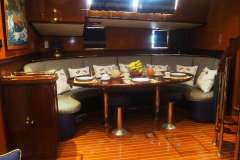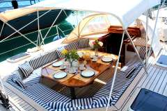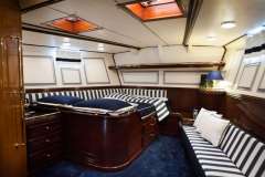 2. Saloon + Dining area as well as the exterior dining area is equipped with an Entertainment system that can play music directly from a CD, radio station of even connect your smartphone through Auxiliary cable (headphones plug). This entertainment system has the power to play the music either only in the interior or only in the exterior or even both exterior and interior dining areas at the same time.