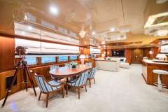 Deck facilities: 2 outdoor bars in the main deck, 2 outdoor showers, seating areas throughout the yacht, Jacuzzi