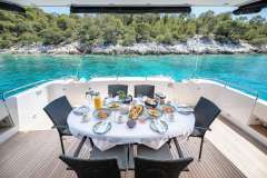Plasma TV in Salon, Master & VIP Cabins, Home theatre in Master Cabin, Safe in Master Cabin, Water maker, 220V power sockets, Full A/C. TV 49'' in the Master cabin, TV 32'' in VIP, in King & in Twin cabin.