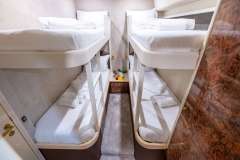 10 guests in 4 cabins:1 x Master cabin, 1 x Vip, 1 x Double cabin & 1 x twin cabin with two single and two permanent fixed bunk beds, all with en-suite facilities.