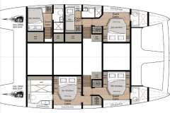 Sunreef 50 ZARA comfortably accommodates 8 in 4 spacious elegant guest cabins all ensuite, with separate cabins for crew.