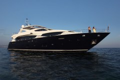 Designed and built by Sunseeker, M/Y ARAGO was delivered in 2009 and lightly refitted before summer 2020. True to Sunseeker’s style she boasts a sophisticated and sleek exterior in the classic navy and white colour scheme. With 5 staterooms consisting of one master, two VIP’s and two twins she accommodates up to 10 guests comfortably. Perfect for large groups or family charters. Timeless styling and sumptuous seating is featured throughout. The hub of the yacht on the sundeck has everything for charter guests including a bar, Jacuzzi with large sunbathing pads, and a dining area under shade . Two Jet Ski Sea Doos are available along with inflatable kayaks, two with windsurfing ability and a fly board among other toys, fun on the water guaranteed for guests of all ages.