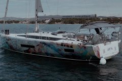 A yacht like ART I catches the eye by its outstanding design, which has been individually painted by an international artists, hence the name. A piece of art, riding steadily through the waves. The ships pantry is graced by an original painting of said artists, which even enhances the experience for our high class clients on the state of the art equipped yacht. There is a story to be told and it will be revealed in 2025 along with the name of the artist!
