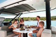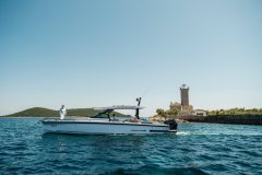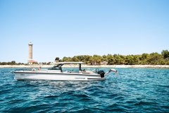 Offered by Amwax Prime, the impressive charter yacht Axopar 37 is a 36 ft yacht. The most attractive features of Axopar 37 are her well-chosen interiors and interconnection with the sea. She was constructed by the ship builder Axopar in 2025. The ingenious yacht layout features 1 generous cabins and comfortably accommodates a maximum of 12 guests.