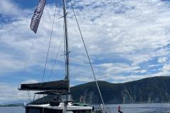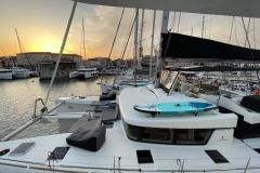 2025 refit includes: new net in the front, new salons in the cockpit, new Bimini and new lazy jack, teak in cockpit and new teak table in the cockpit.