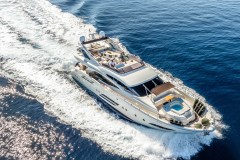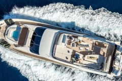At 23 meters, Dalia is a yacht that exudes Italian sophistication and modern luxury. She blends sleek lines with contemporary comfort, offering a lifestyle where every detail has been carefully designed to inspire. Accommodating up to eight guests across four beautifully appointed cabins, including one double and three twins. Each space is refined yet welcoming, creating a sense of comfort that feels both indulgent and personal. A professional crew of three is always on hand, ensuring impeccable service and a seamless charter experience. Life on board flows effortlessly between relaxation and celebration. A deck Jacuzzi offers the perfect retreat under the stars, while expansive outdoor lounges invite guests to unwind, dine, or enjoy the views. Inside, air- conditioned interiors provide a haven of calm, featuring stylish design and generous living areas perfect for social gatherings.