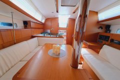 Offered by Amwax Prime, the impressive charter yacht Emilina is a 38 ft yacht. The most appealing features of Emilina are her elegant profile and fantastic layout. She was completed by the ship builder Jeanneau in 2018. The well-planned yacht layout features 3 large cabins and comfortably accommodates a maximum of 8 guests.