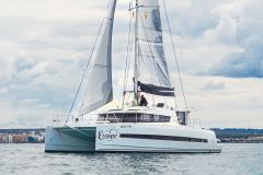 Introduced by Amwax Prime, the astonishing charter yacht Escape is a 40 ft yacht. The most attractive features of Escape are her impeccable styling and experienced crew. She was completed by the well-known ship builder Catana Group in 2018. The ingenious yacht layout features 4 cozy cabins and easily accommodates a maximum of 10 guests.
