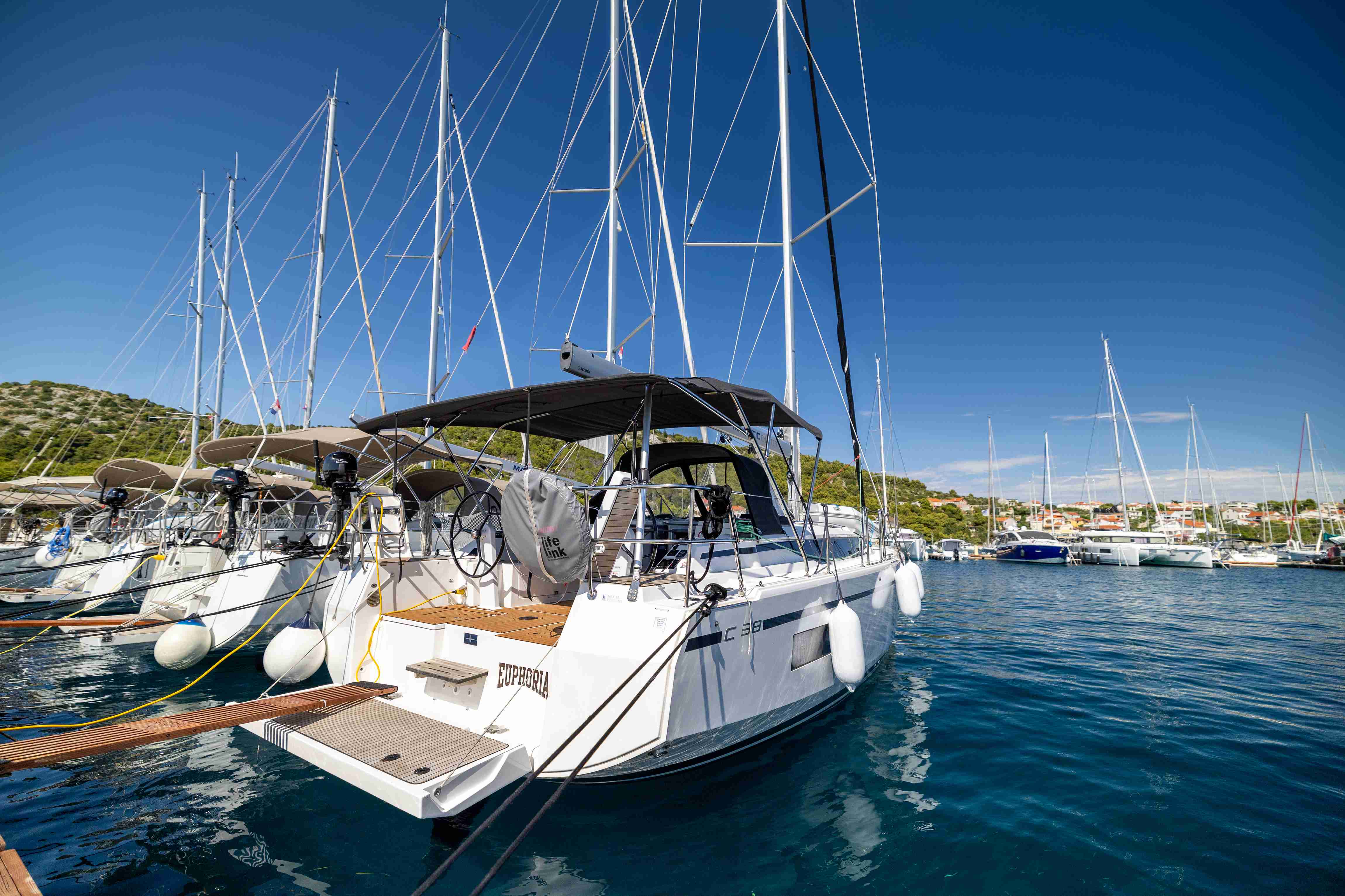 Presented by Amwax Prime, the impressive charter yacht Euphoria is a 38 ft yacht. The promiment features of Euphoria are her well-chosen interiors and interconnection with the sea. She was constructed by recognized shipbuilder Bavaria Yachtbau in 2024. The ingenious yacht layout features 3 large cabins and easily accommodates a group of 7 guests.