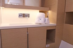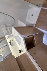 KEY EQUIPMENT : Bow thruster - 24V, retractable ; Inverter ; Bathing platform ; Sun mattresses - sun bed cushions on coach roof ; Teak coach roof ; Teak deck - on side deck ; Teak table - teak cockpit table electrically lower able into sunbed ; Ambiental lighting - courtesy lights in cockpit/companionway, saloon ; Outboard engine ; NESPRESSO coffee machine ; Wifi Internet