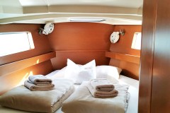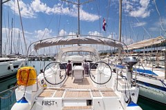 Beneteau Oceanis FIRST (41 feet, 12.34 metres) with 3 cabins is ideal for smaller crews or families. 2 comfortable bathrooms offer plenty of space and privacy. The electrically lowerable bathing platform facilitates entry and exit both on land and for swimming in the crystal-clear waters of the Adriatic. The chart plotter data can be read at both helm stations. Teak has been laid in the cockpit of the Oceanis First 41.1. A 570 litre water tank makes it possible to stay in bays for longer periods without having to go ashore. A Nespresso coffee machine, heating and electric fans in the saloon and cabins are also part of the equipment. Our yachts are equipped with C.I.G.O. Charter Information Guide Online. Unlimited internet, dinghy and outboard engine are included in the charter price.