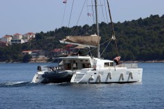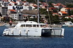 The Lagoon 440 (4 cab. + 2 crew cab.) offers space for up to 12 people with 4 cabins + skipper's cabins and sleeping berths in the saloon. The L440 Futuna T is ideal for large crews who want to explore the Croatian islands together. Sunsets can be watched from the flybridge. Provisioning for your arrival day is possible on request. Stand-up paddle or jet surf can also be booked. The Lagoon 440, built in 2009, was technically and visually overhauled at the start of the 2024 season. Thanks to solar power, she now also generates her own environmentally friendly electricity. She is equipped with an inverter and 2 refrigerators, one of which has a freezer and modern underwater lighting. Our yachts are equipped with C.I.G.O. Charter Information Guide Online. Unlimited internet, dinghy and outboard motor are included in the charter price.