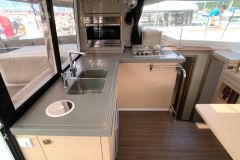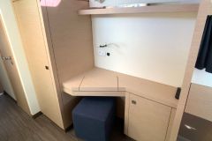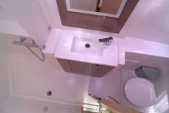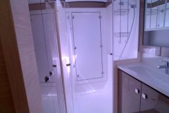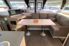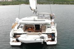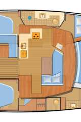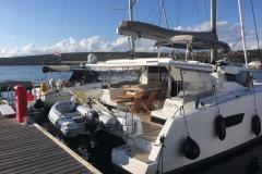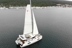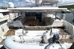 CST Performance battened mainsail, lazy bag and lazy jack, single line reefing system (reef 1), electric halyard winch, hard top wraparound fairing, foredeck awning, Fusion™ with remote control in cockpit (radio, dock IPHONE®, USB, Android) - interior speakers - Outside speakers (Bose), TV SAT system, 32" TV with DVD and USB connection in the saloon, 24" TV in the owner's cabin, radio (DSC & AIS) with outside speakers, dinghy (davits with tackles and clamps), free 20 HP outboard engine , chaise lounge bed, 12V inside and outside sockets, curtains in all cabins and saloon, stern shower (hot/cold water), soft top cushions, additional electric fresh water pump, 3-blade folding propeller, slatted frames in all cabins, remote control for autopilot, WiFi amplifier, Gas oven 45l, generator 6kW 220V 50Hz, solar panels 3 x 90W, bowsprit with gennaker equipment