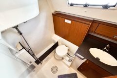 Both the forward V-berth and the aft cabin feature ample storage, hanging closets, and bedside shelving as well as portlights and fans installed throughout the yacht for ventilation. Her cabins offer a comfortable and private retreat at the end of each day.
