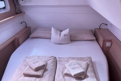 The Lagoon 450F (4 cab. + 2 crew cab.) is probably the best-selling catamaran from the well-known manufacturer Lagoon. Spend your holiday on this successful model on board the Julius Cesar III with flybridge. With 4 cabins and 4 heads with electric WC, 2 skipper's cabins and 2 berths in the saloon, the Lagoon 450 F (flybridge) offers space for large crews who want to explore the Adriatic together. 2 fridges and a freezer also ensure that provisions stay fresh and drinks stay cold. The Julius Cesar III is equipped with solar power and produces environmentally friendly electricity for your convenience. Modern underwater lighting, a 7kW generator and air conditioning in all cabins and the saloon, USB charging sockets, Nespresso Coffey maker and a 1200W inverter complete the equipment. Our yachts are equipped with C.I.G.O. Charter Information Guide Online. Unlimited internet, dinghy and outboard engine are included in the charter price.