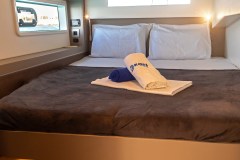 Introduced by Amwax Prime, the impressive charter yacht Kos 42.4 is a 42 ft yacht. The promiment features of Kos 42.4 are her generous space and alfresco dining areas. She was constructed by the renowned boatbuilder Catana Group in 2022. The ingenious yacht layout features 4 cozy cabins and easily accommodates a maximum of 10 guests.
