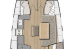 Offered by Amwax Prime, the impressive charter yacht Kos 46.6 is a 46 ft yacht. The most appealing features of Kos 46.6 are her impeccable styling and interconnection with the sea. She was completed by the well-known ship builder Bénéteau in 2020. The spacious yacht layout features 5 large cabins and easily accommodates a maximum of 10 guests.