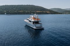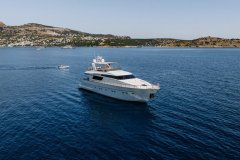 Offered by Amwax Prime, the impressive charter yacht Kuum is a 72 ft yacht featuring a jetski. The most appealing features of Kuum are her absolute comfort and fantastic layout. She was delivered by the renowned boatbuilder San Lorenzo in 2009. The expansive yacht layout features 4 large cabins and easily accommodates a maximum of 9 guests.
