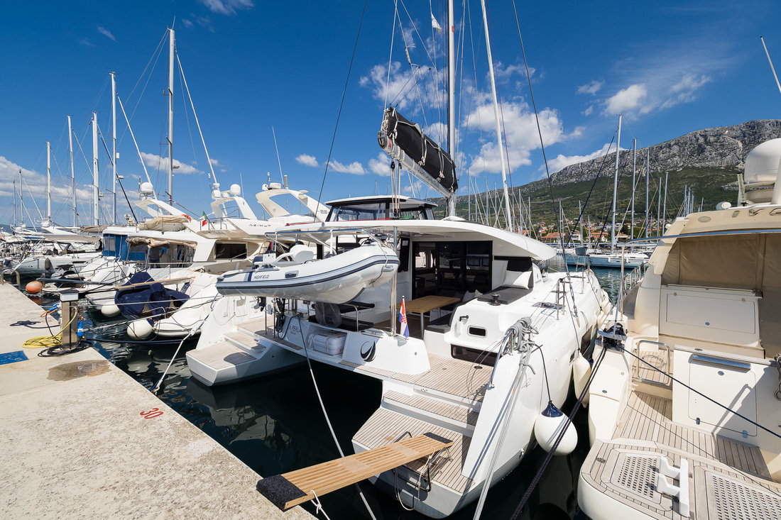 Introduced by Amwax Prime, the astonishing charter yacht La Perla is a 42 ft yacht. The main attractions of La Perla are her impeccable styling and alfresco dining areas. She was constructed by recognized shipbuilder Lagoon-Bénéteau in 2019. The ingenious yacht layout features 3 cozy cabins and easily accommodates a group of 9 guests.