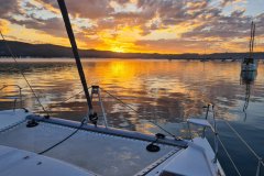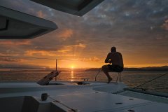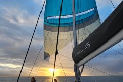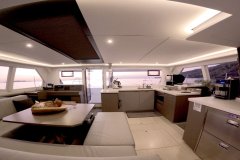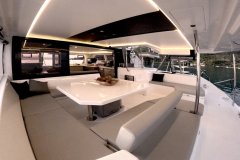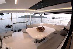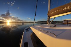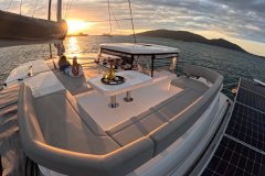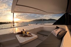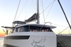 Liquid Coconut is a stunning Leopard 45, launched in 2023, embodying Leopard’s reputation for spaciousness, sturdiness, and remarkable sailing performance. The latest design upgrades provide a perfect balance of comfort and convenience for both crew and guests. The fully opening sliding doors of the main saloon create an expansive, uninterrupted flow between the aft cockpit and the salon, allowing guests to enjoy the yacht’s generous space to the fullest.