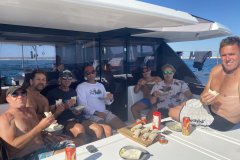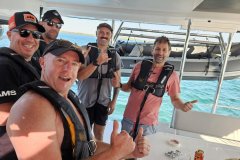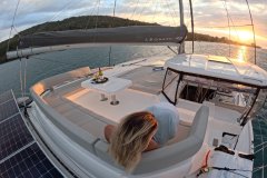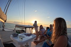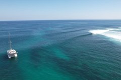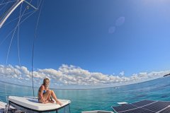 What truly elevates the Liquid Coconut experience is the outstanding crew: Kemble and Lindi, known for their exceptional hosting skills and numerous delighted guests. Their fun-loving personalities and expertise in watersports make every voyage memorable. Kemble, a dive master with proficiency in surfing, kitesurfing, and wingfoiling, ensures adventure at every stop, while Lindi’s passion for snorkeling and culinary expertise delights with a blend of modern, healthy, and locally-inspired dishes.