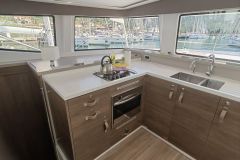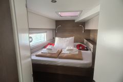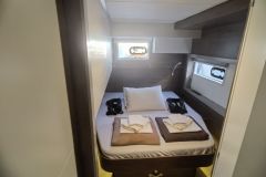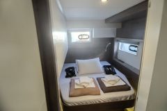 Introduced by Amwax Prime, the astonishing charter yacht MADAME BLACK is a 44 ft yacht. The highlights of MADAME BLACK are her generous space and alfresco dining areas. She was delivered by the renowned boatbuilder Catana Group in 2023. The spacious yacht layout features 4 cozy cabins and easily accommodates up to 9 guests.