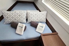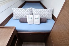 Offered by Amwax Prime, the breathtaking charter yacht Mignonne is a 40 ft yacht. The most attractive features of Mignonne are her absolute comfort and alfresco dining areas. She was delivered by the renowned boatbuilder Lagoon-Bénéteau in 2019. The well-planned yacht layout features 4 cozy cabins and easily accommodates a group of 12 guests.