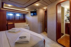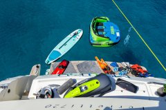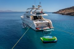 Introduced by Amwax Prime, the breathtaking charter yacht My Way is a 72 ft yacht featuring a jetski. The most attractive features of My Way are her impeccable styling and alfresco dining areas. She was delivered by recognized shipbuilder Ferretti Yachts Group in 2002. The ingenious yacht layout features 4 cozy cabins and comfortably accommodates a group of 12 guests.