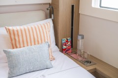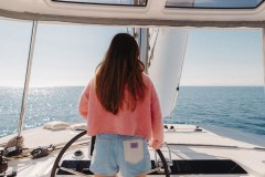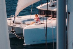 Extended sunpads across the trampoline and a new forward swim ladder for easier sea access.
