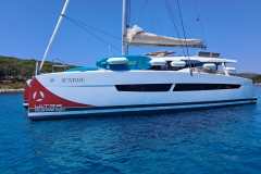 Offered by Amwax Prime, the impressive charter yacht NEW51 is a 51 ft yacht. The most attractive features of NEW51 are her well-chosen interiors and interconnection with the sea. She was completed by the ship builder Fountaine Pajot in 2025. The well-planned yacht layout features 5 large cabins and comfortably accommodates a maximum of 11 guests.