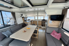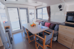 KEY EQUIPMENT: A/C in saloon and master cabin (shore power), Furuno GPS chart plotter - at helm station and in salon ; Solar panels ; Heating ; Extra large refrigerator ; 3 x electric toilet ; LCD TV ; Sliding cockpit ceiling doors ; Outboard engine ; NESPRESSO coffee machine ; Wifi Internet