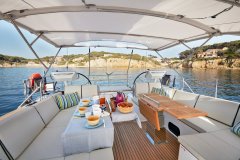 Advertised by Amwax Prime, the breathtaking charter yacht Olga V is a 62 ft yacht. The primary distinction of Olga V are her elegant profile and experienced crew. She was delivered by the well-known ship builder Bénéteau in 2017. The spacious yacht layout features 3 generous cabins and comfortably accommodates a maximum of 7 guests.