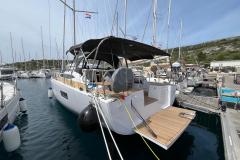 Advertised by Amwax Prime, the astonishing charter yacht Ollie is a 43 ft yacht. The most attractive features of Ollie are her elegant profile and inviting socializing areas. She was delivered by the renowned boatbuilder Elan Marine in 2024. The well-planned yacht layout features 3 large cabins and comfortably accommodates a group of 8 guests.