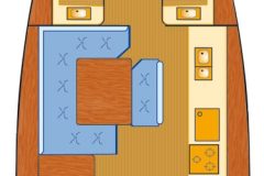 Extra control unit for windlass with chain counter, large freezer and additional refrigerator, CD radio with 2 speakers in saloon and cockpit