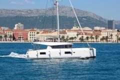 Introduced by Amwax Prime, the breathtaking charter yacht Poppy is a 42 ft yacht. The main attractions of Poppy are her impeccable styling and inviting socializing areas. She was completed by the famous yacht builder Lagoon-Bénéteau in 2019. The expansive yacht layout features 4 cozy cabins and comfortably accommodates a maximum of 10 guests.