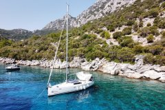 Presented by Amwax Prime, the majestic charter yacht Rhapsody is a 43 ft yacht. The promiment features of Rhapsody are her impeccable styling and alfresco dining areas. She was constructed by the renowned boatbuilder Bénéteau in 2011. The expansive yacht layout features 3 cozy cabins and comfortably accommodates a group of 6 guests.