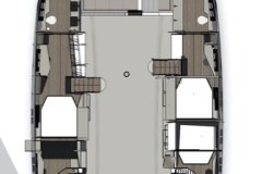 Inside, you’ll find two expansive owner’s suites and one additional guest cabin, each with its own private bathroom—perfectly tailored for up to six guests. A dedicated two-person crew enjoys their own separate quarters, ensuring the highest level of service and privacy.