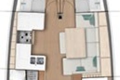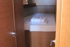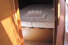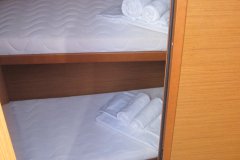 Retractable bow thruster, Sea water tap in the kitchen, Drawer refrigerator in the salon, Top-loading freezer in the salon, Fans in the cabins and salon, Electric wc