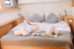 Presented by Amwax Prime, the majestic charter yacht Time is a 45 ft yacht. The primary distinction of Time are her absolute comfort and alfresco dining areas. She was constructed by the famous yacht builder Lagoon-Bénéteau in 2015. The expansive yacht layout features 4 cozy cabins and comfortably accommodates a maximum of 12 guests.